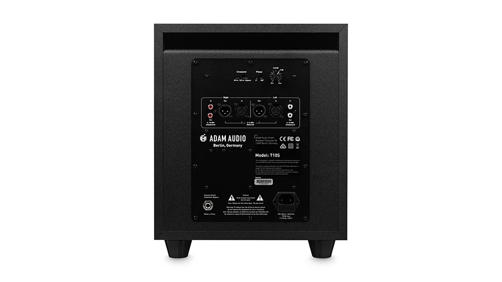 T10S 配備一個 10 英寸低音揚聲器和一個 130 瓦的 Class-D 放大器。其頻率響應範圍為 28 Hz 至 120 Hz,最大 SPL 達到 104 dB。內部可調的雙通道分頻器可以校準低音信號,並提供整個系統的最佳性能。低音揚聲器後部的選項允許進行各種調整。