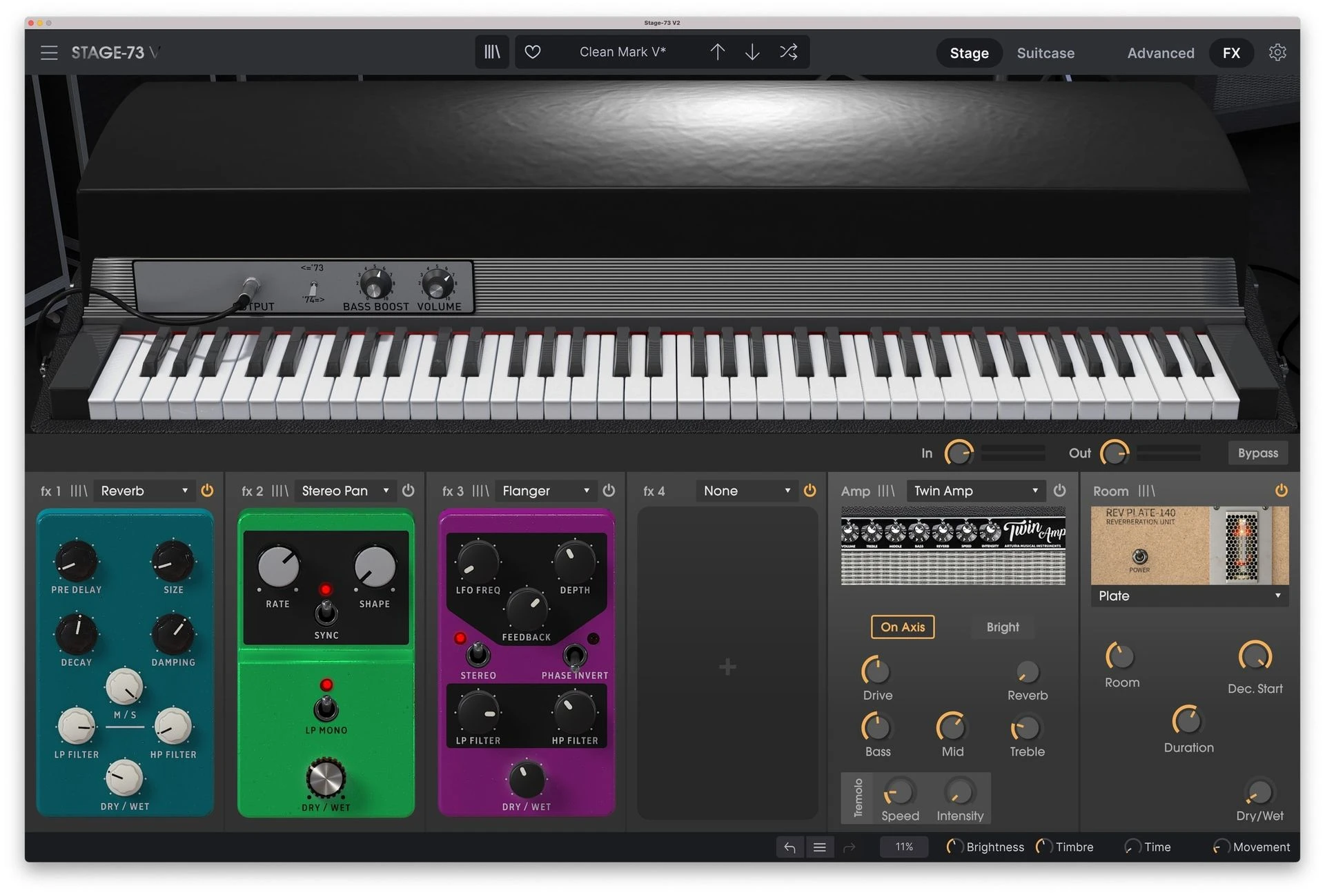 Stage-73 為您提供地球上最受歡迎的電鋼琴的 Stage 和手提箱版本的真實真實建模 - 完成了對虛擬機制的無與倫比的控制、效果踏板的補充和內置的經典放大器。