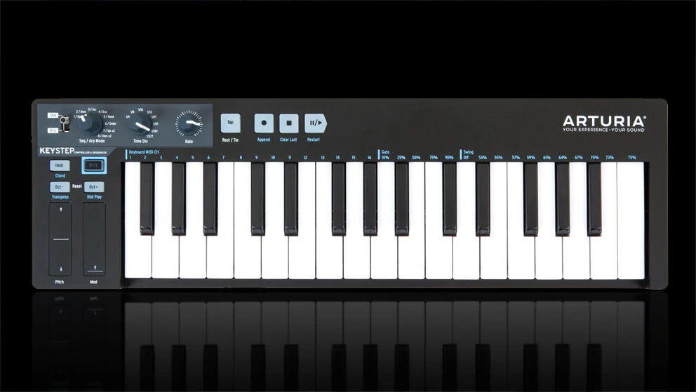 KeyStep可以像大部分更大的鍵盤控制器一樣憑藉其豐富的陣列功能,包括一個定製的32個薄型化鍵盤,並有力度感應及鍵後觸感,高反應性的滑音和調變電容式絲帶觸控條及可透過MIDI和CV來控制所有類型的合成器。