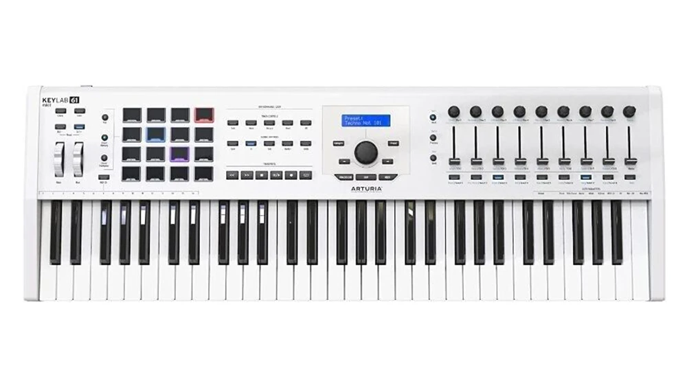 Arturia KeyLab MkII 配備了 16 個 RGB 背光功能墊、9 個大型推桿、9 個旋鈕、4 個 CV 輸出、5 個表情控制輸入以及由 Analog Lab 5 提供的殺手級軟體包,提供製作音樂所需的一切。