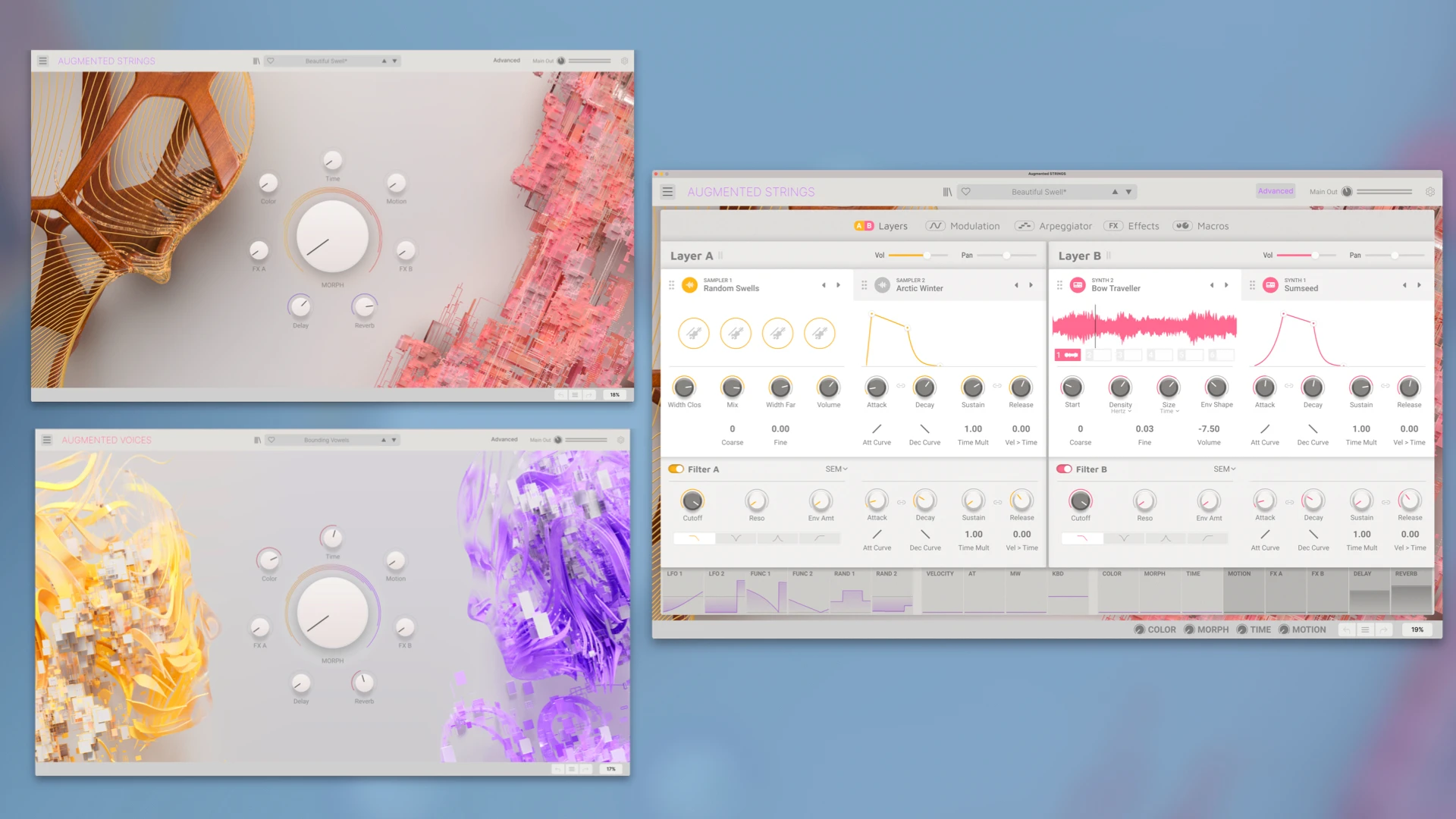在 Augmented VOICES 的聲音層之間無縫移動,並與創新的 Morph 控制一致地改變多個聲音元素。從人聲到合成,從輕到暗,從微妙到爆炸,創造戲劇性和不斷發展的聲音。