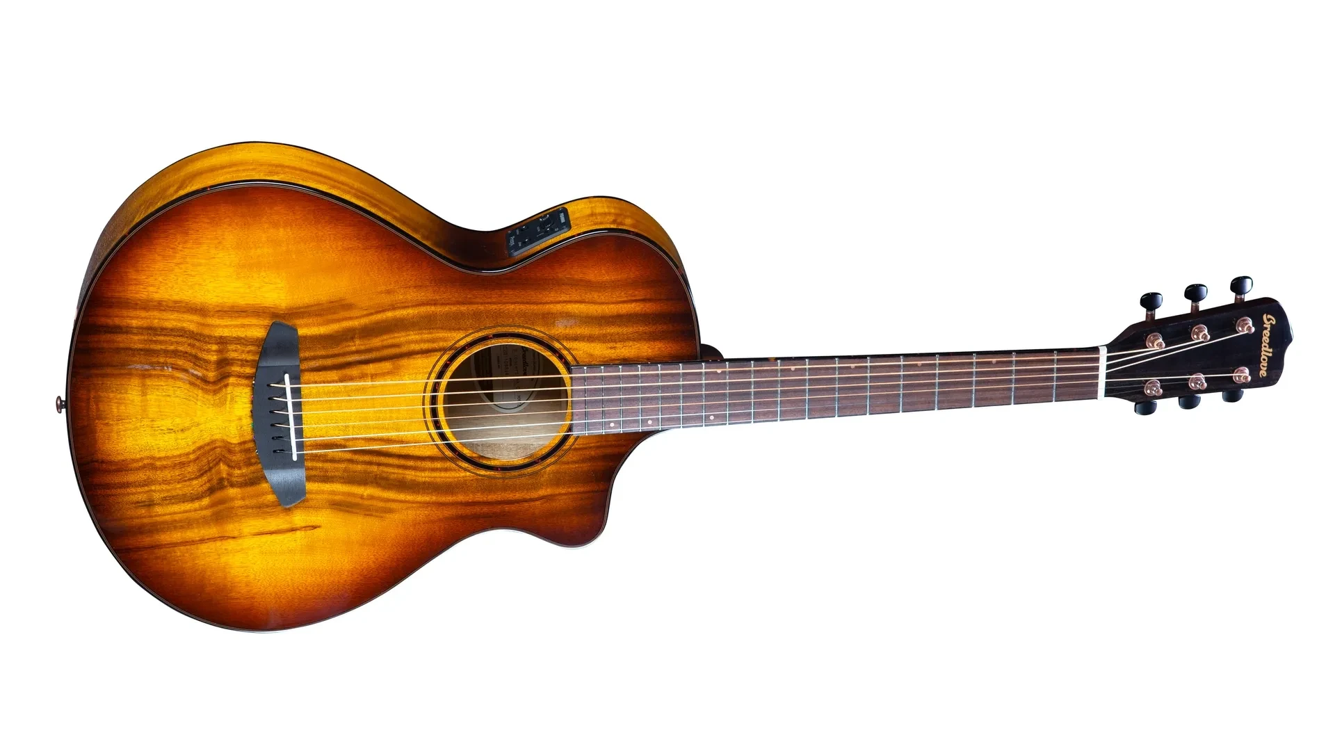 這把琴採用代表Breedlove拿手之作的香桃木(Myrtlewood),這種木頭結合了玫瑰木、桃花心木和楓木的最佳元素 —「豐富的低音、溫暖的中音和清晰明亮的高音」。它是一把多功能的木吉他,擁有獨特、變化多樣的音色。