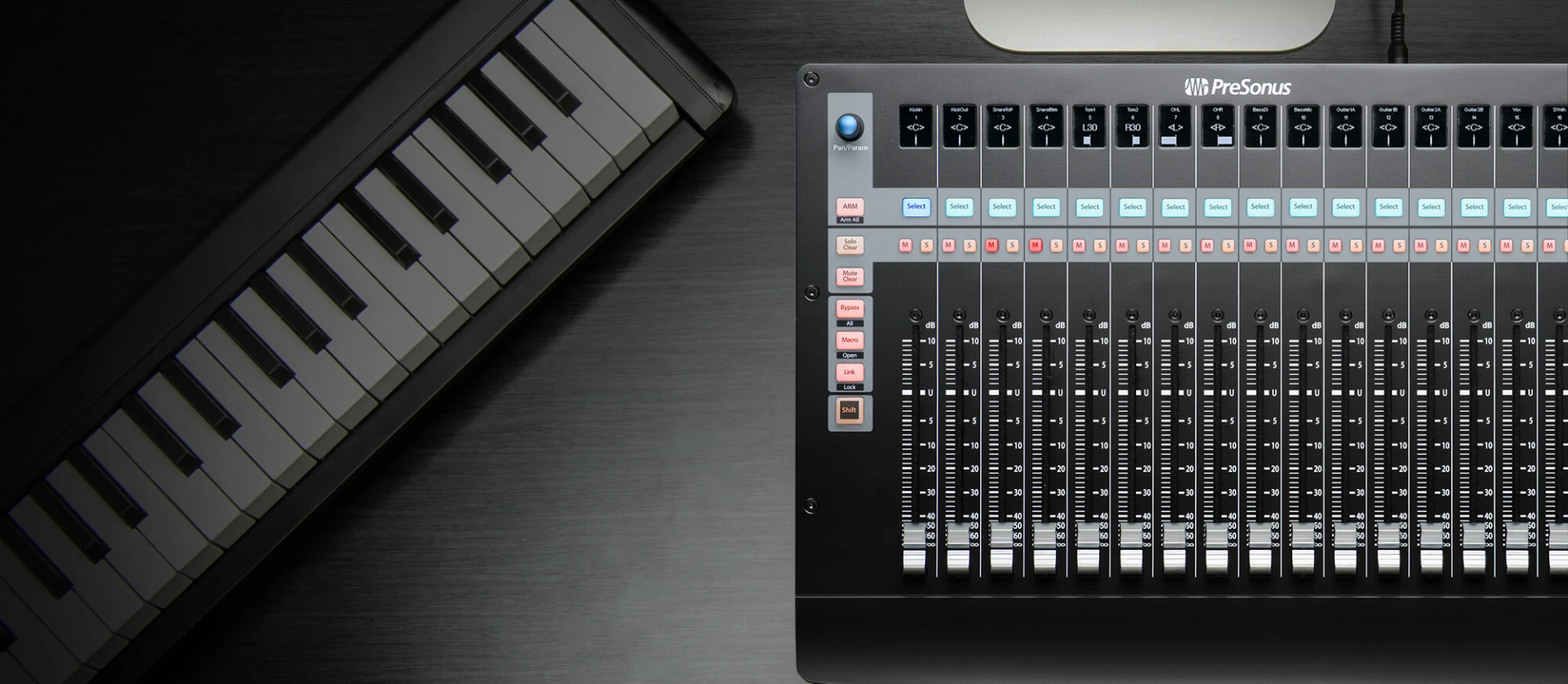 16 100 mm long-throw, touch-sensitive, motorized faders