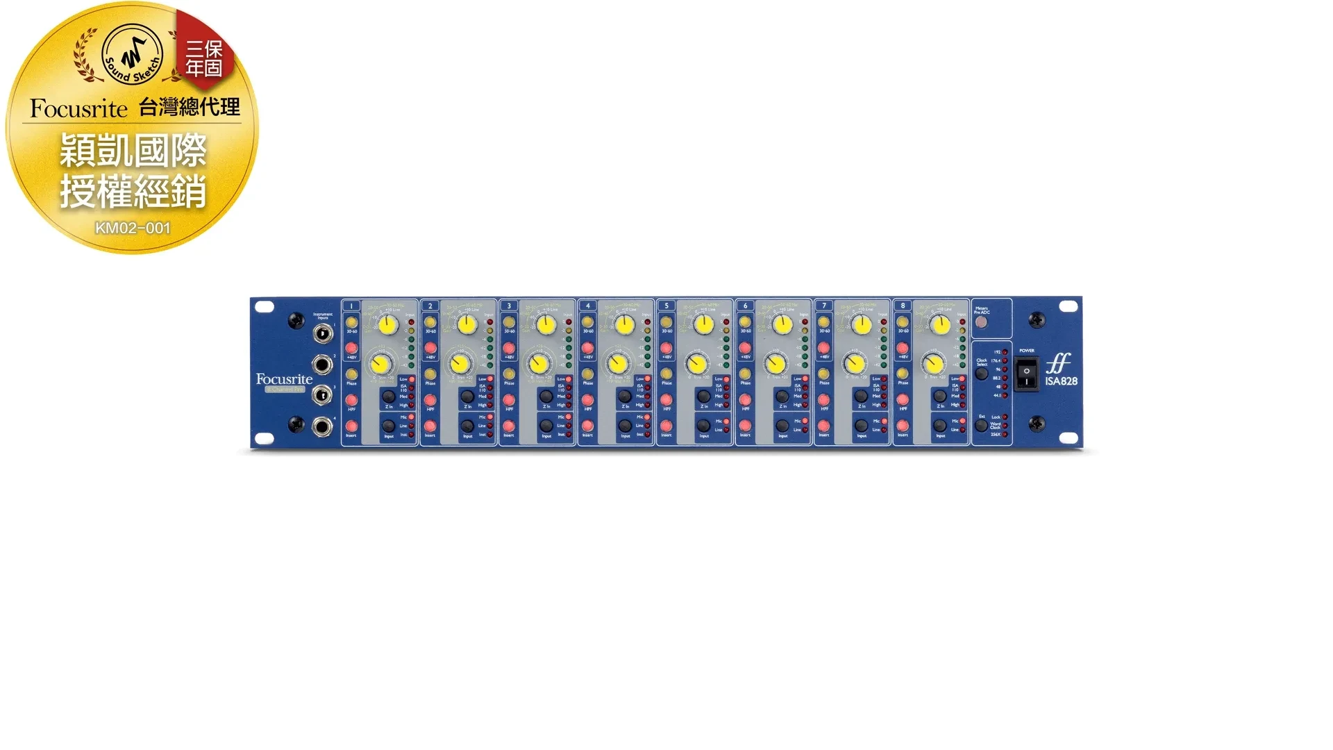 ISA 828 MkII整合了八個Focusrite的經典麥克風前級,每個輸入均配有Lundahl LL1538變壓器。每個聲道都有麥克風或Line輸入供選擇,而輸入1到輸入4還配有前置樂器輸入。每個麥克風前級都有可變的輸入阻抗,以便在使用麥克風時提供一系列略有不同的聲效;內建「ISA 110」的設置,複製了原始Focusrite麥克風前級的阻抗。