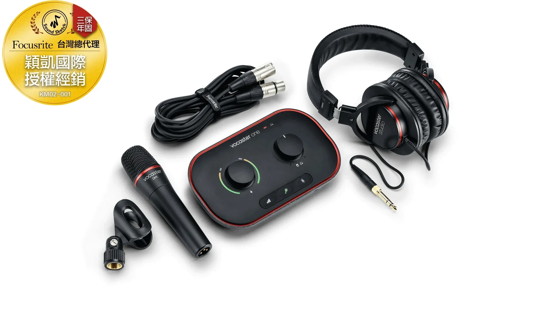 Focusrite|Vocaster One Studio 直播/人聲專用 音訊介面套裝組