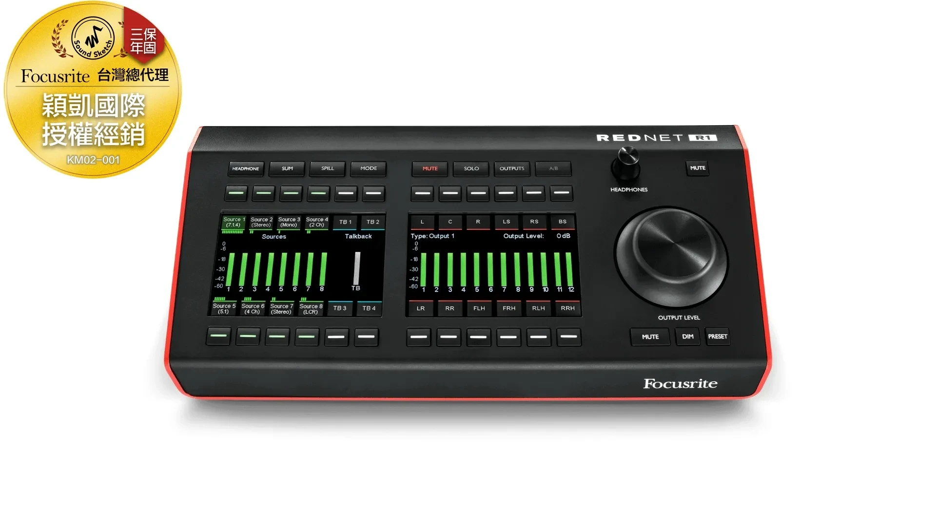 RedNet R1是一款適用於Focusrite Red系列錄音介面的多功能桌面控制器,與Red系列介面結合使用時,RedNet R1可讓您完全控制監聽選擇、訊號源選擇,並提供Dante®、Pro Tools™ | HD和Thunderbolt™連接。另外,還可用於管理Focusrite Red系列介面上的遠端控制麥克風前級,以便將介面維持在機架中。