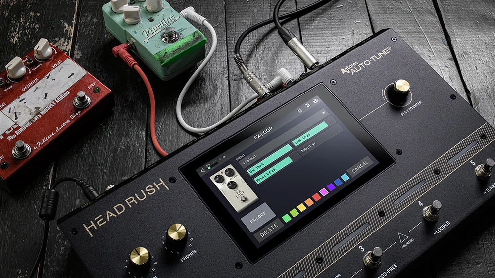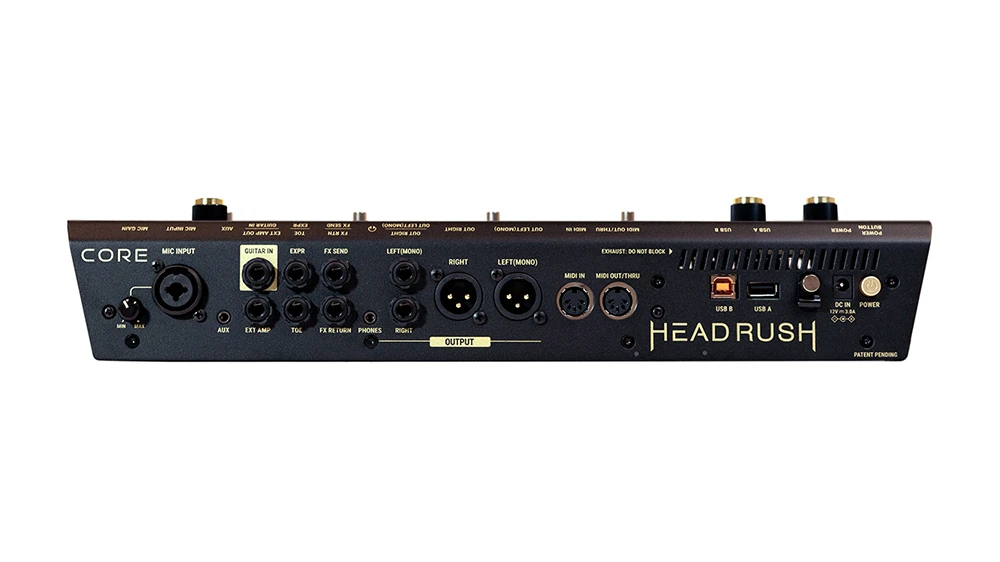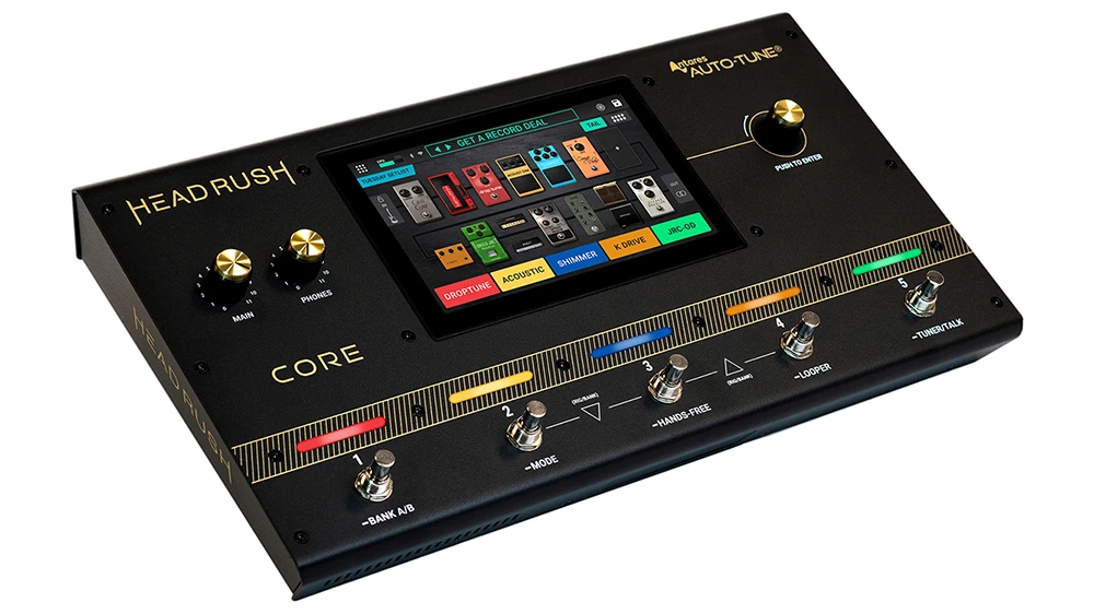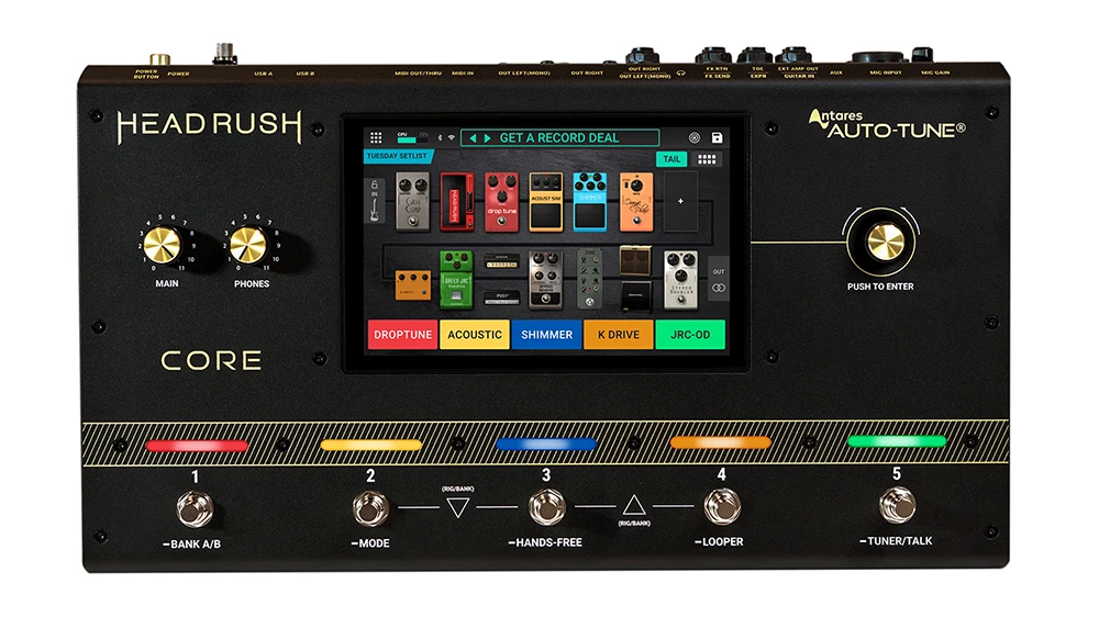 HeadRush Core 的核心是一個 7 英寸的觸控螢幕。可以用輕觸、滑動和拖放的方式,以快速和精準的即時創建吉他、低音吉他和聲樂設備。螢幕也會在現場演奏時提供清晰的反饋,特別是在使用外部踏板進行音調微調的「免提模式」。