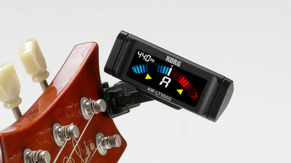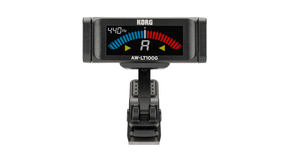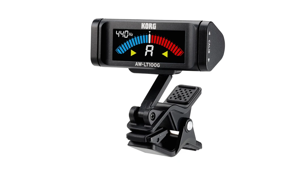 KORG 的夾式調音器可以直接固定在您的樂器上,方便進行調音。新的產品陣容現在包含專為吉他設計的 AW-LT100G 和專為貝斯設計的 AW-LT100B。
