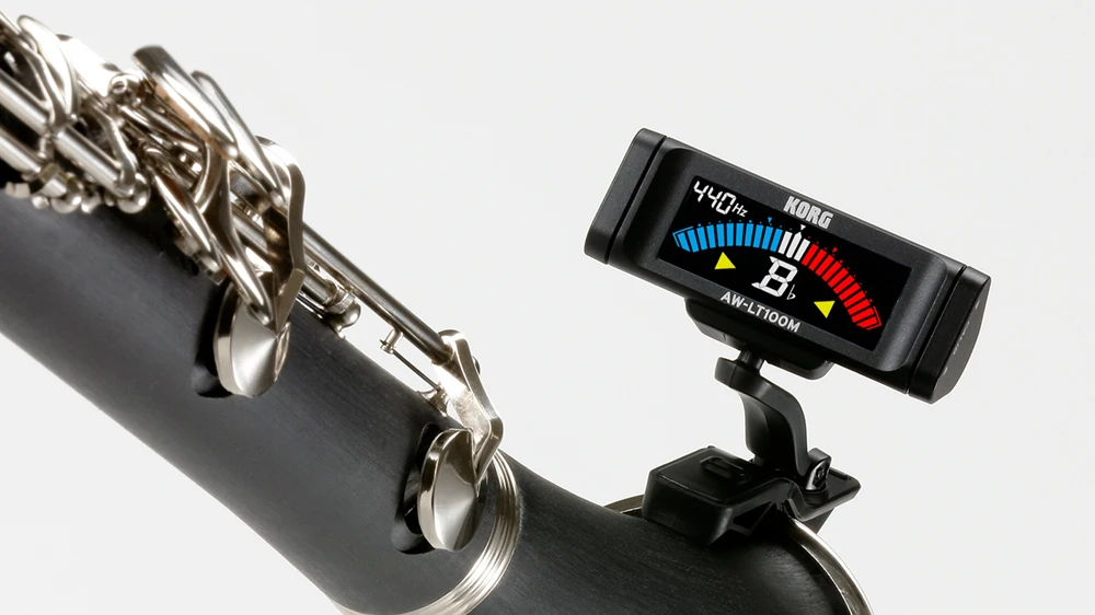 夾在樂器上便於調音,新的AW-LT100系列的調音器中AW-LT100M可針對大部份的管弦樂器