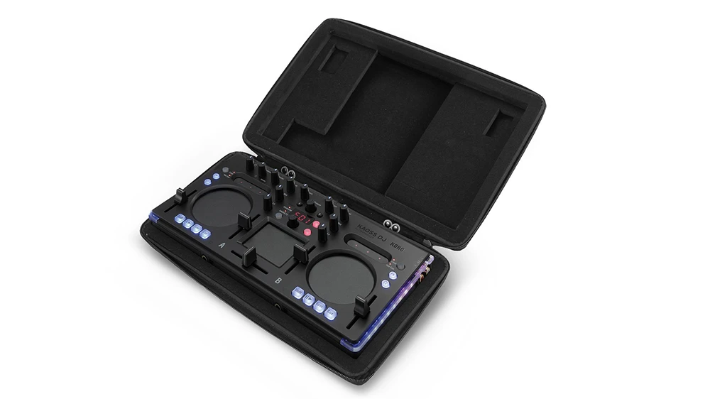 流線造型的 KAOSS DJ 控制器,內建了高光度的多彩 LED,讓使用者能夠清楚地看見音樂的回饋。730 公克的羽量級控制器讓您可帶著隨處走跳。