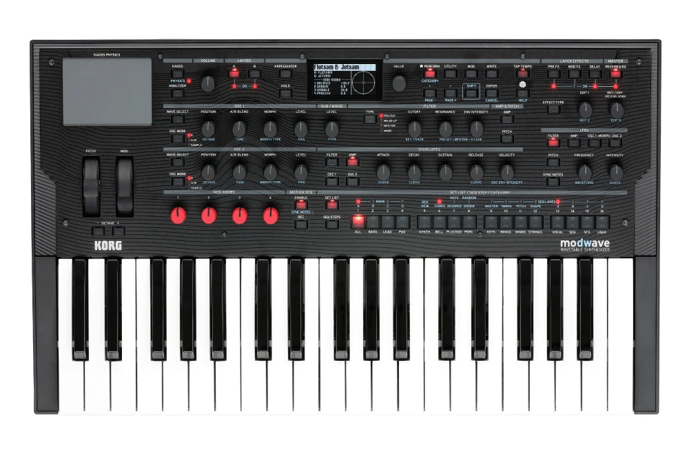 Modwave 配置了一個 37 鍵的鍵盤,支持力度感應,還引入了 2 個用於創建動態運動的 獨特新工具:Kaoss Physics 和 Motion Sequencing 2.0。Kaoss Physics 將 X/Y Kaoss 控制板與可調變的遊戲物理相結合,創建了一個交互式控制器,除了功能強大之外,還可以 探索很多樂趣。Motion Sequencing 2.0 將 Wavestate 的 Wave Sequencing 2.0 系統,不斷發展的音樂段落帶入了運動序列領域,包括多通道和即時記錄,可幫助您創建其他步進編曲器無法實現的複雜且不斷發展的片段樂句。