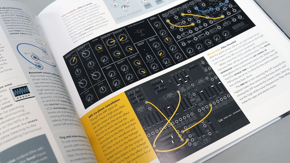 ▲ 這本書提供了透過 KORG 和 ARP 產品解釋的合成基礎知識,並帶有易於理解的顏色編碼、插圖和串接跳線示範。
