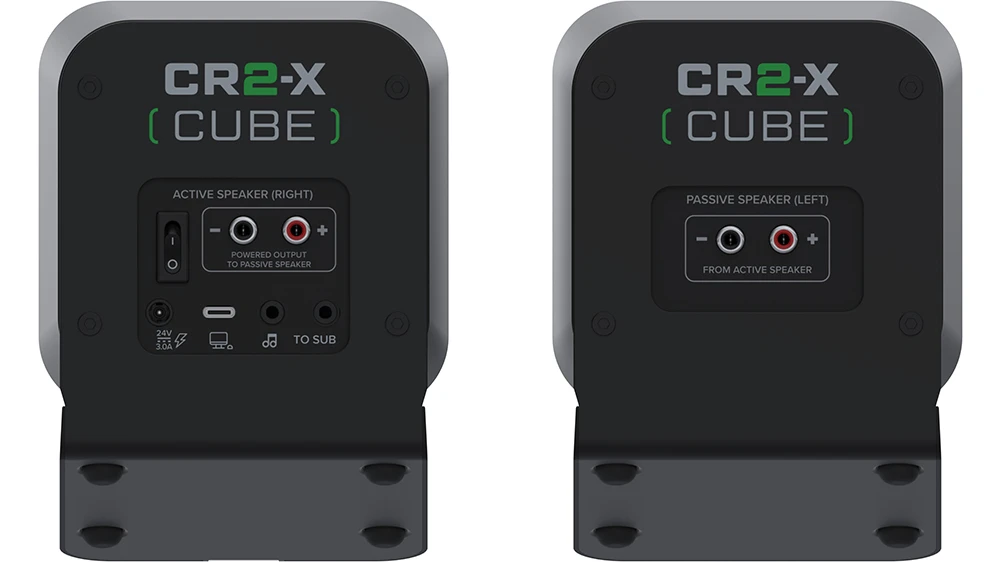 CR2-X Cube 設計用於 Mackie CR6S-X 低音喇叭,且也與大多數低音喇叭兼容。如果您喜歡浩大的低音,不妨試試看讓您的 CR2-X Cube 接上低音喇叭。