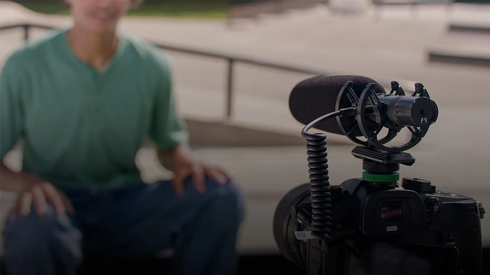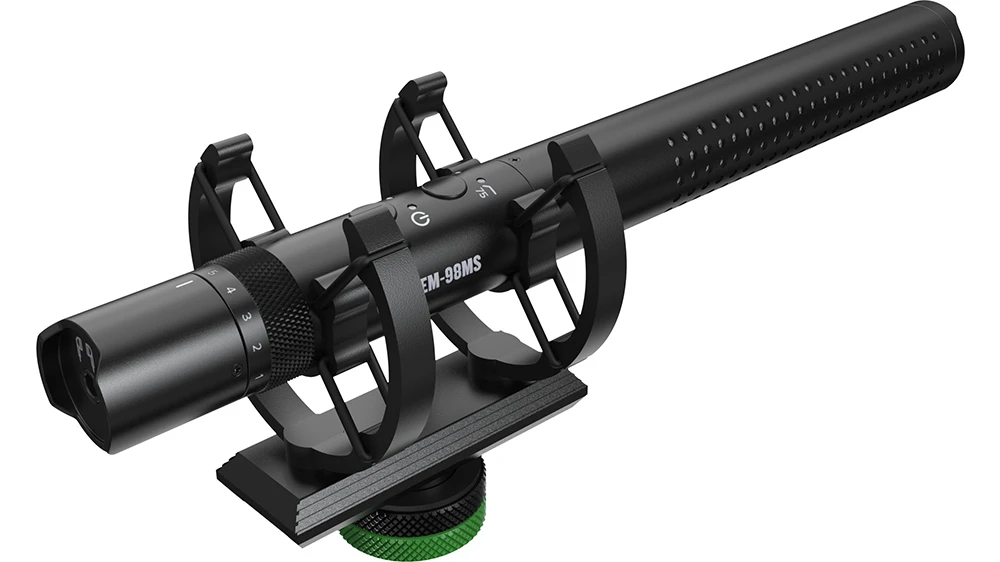 使用 DSLR數位單反相機或手機上的高指向性 EM-98MS 移動槍型麥克風可收錄到透明、清晰的廣播級聲音品質。