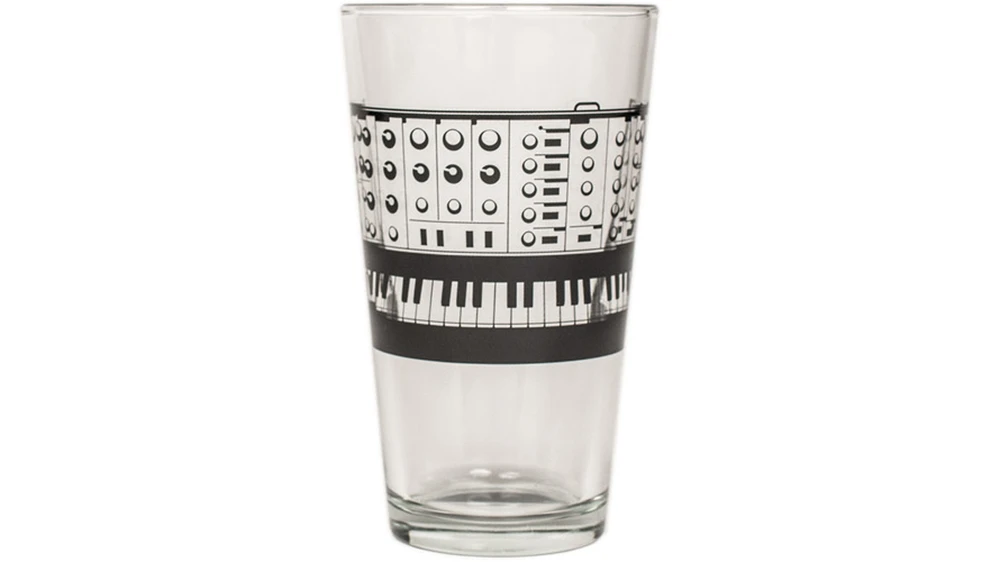 Moog 的 Minimoog 品脫玻璃是一款適用於洗碗機的玻璃杯,上面印有經典的 Minimoog Old School 合成器的圖案。喝著飲料,讓經典的 Minimoog 陪伴著你。