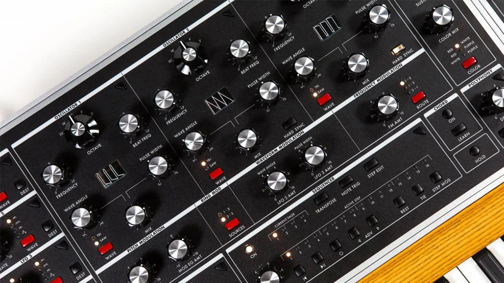 Moog One 的前面板配備了 73 個旋鈕和 144 個按鈕,固定在手工制作的梣木櫃和鋁合金外殼上,鼓勵物理連接每個聲音塑造和演奏控制。通過每個模塊的 “More” 按鈕,可以輕鬆訪問擴展功能,使用 Moog One 中心面板的液晶顯示螢幕將額外的參數帶入焦點,以確保最透明和迅速的聲音創建體驗。