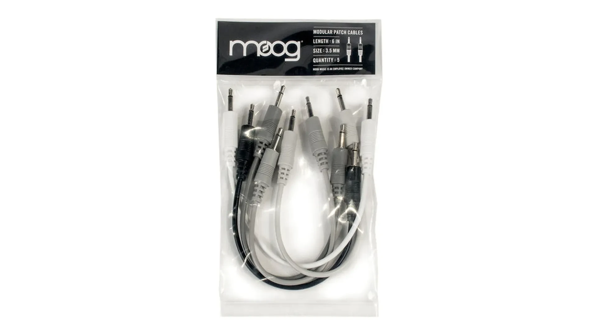 這套用於 Moog Mother-32 合成器的跳線包含五個 1/8" (3.5 mm) TS 接頭的 6" 跳線。根據黑白灰進行顏色編碼,以便於識別。