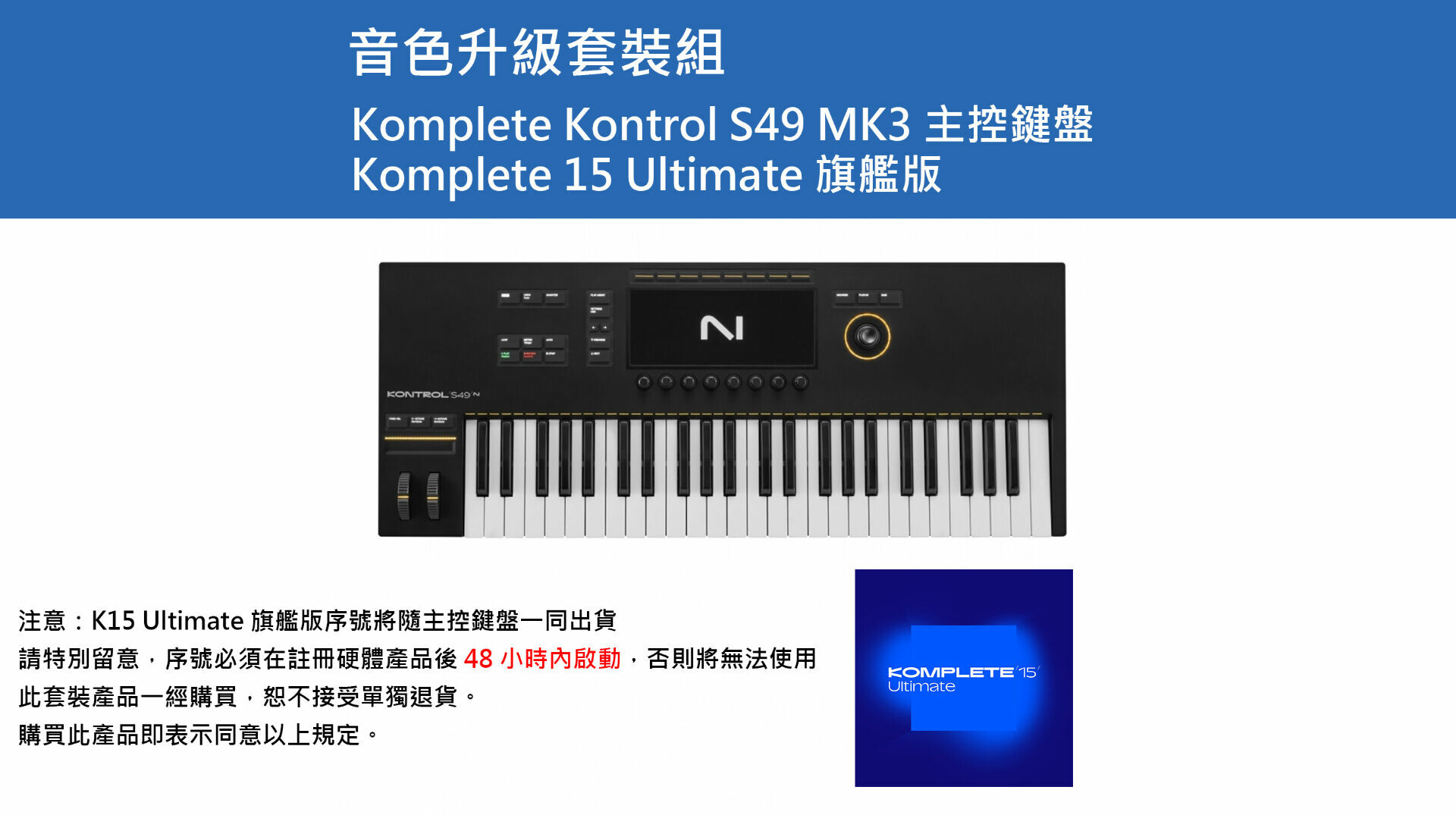 內含:Komplete Kontrol S49 MK3 主控鍵盤 + Komplete Ultimate 旗艦版