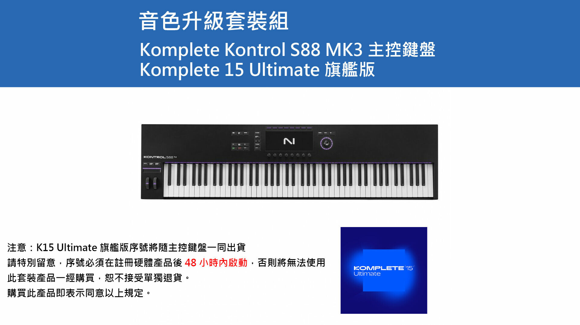 【套裝組】NI|Komplete Kontrol S88 MK3 主控鍵盤+K15 Ultimate 旗艦版