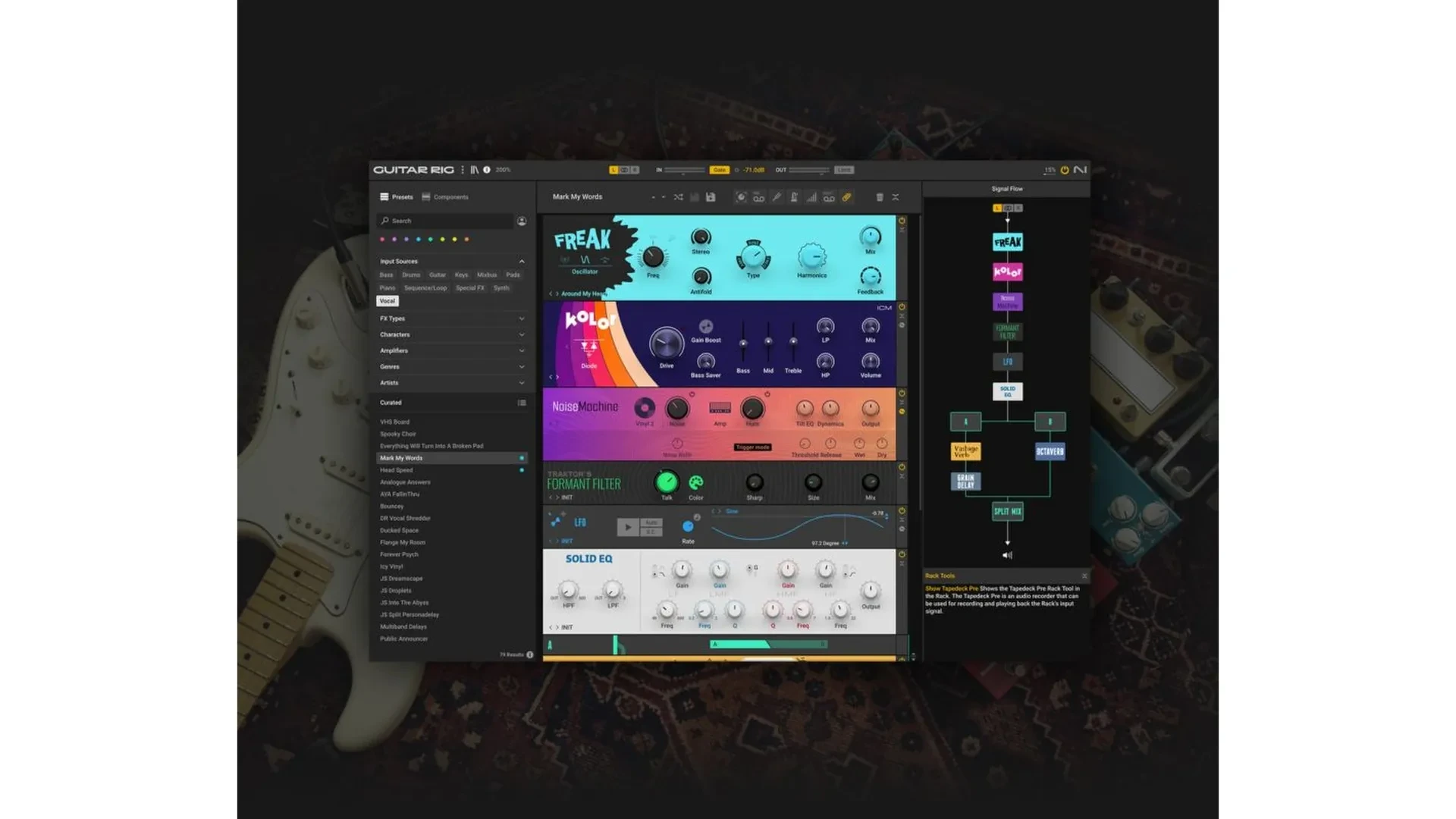 Guitar Rig 7 Pro 激發您的創造力 — 這是一款充滿廣受歡迎的吉他和貝斯音箱模擬、錄音室效果器的靈感套件。透過多個預設獲得立即的氛圍,或用混搭組合來塑造您自己的音色。四個全新的 Lo-Fi 組件增添類比感的溫暖特色,非常適合使用在各種曲目中。