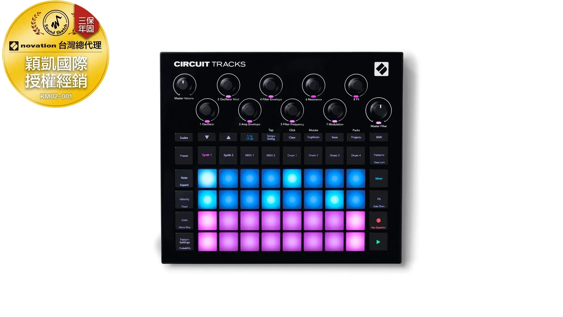 Circuit Tracks 是一個一體化的 groovebox 編曲機,配備兩個多音軌合成器軌道、兩個 MIDI 軌道和四個鼓組軌道,您可將所有元素鎖定在您的節奏中,或透過即時控制、各種可能性和模式變異等功能玩出屬於自己的創作。