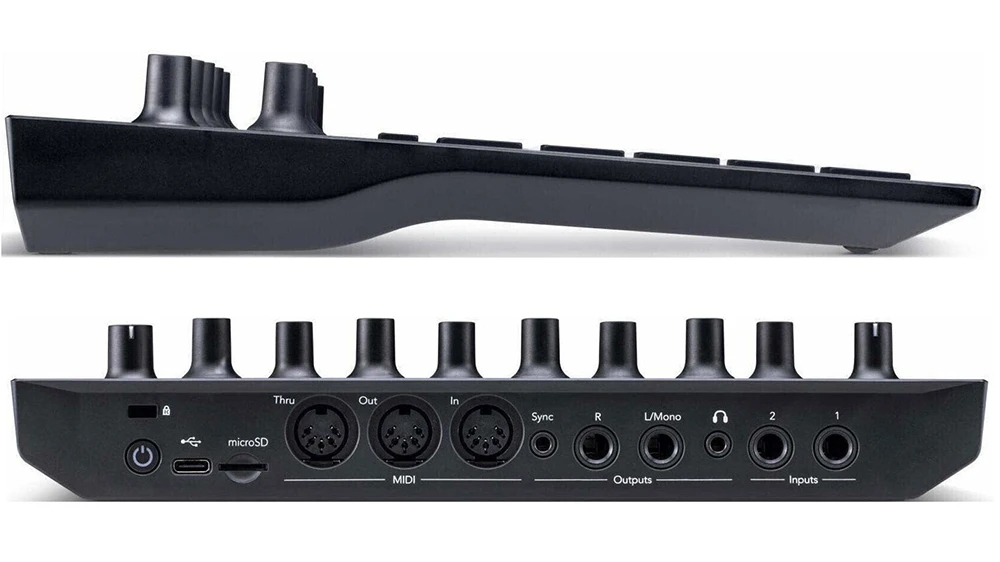 兩個 MIDI 序列軌道可讓您控制並編程外部設備,從鼓機到效果器應有盡有。音頻輸入可讓您將所有聲音帶入 Circuit Tracks 的環境中。輸出為各種場合提供監聽選項。