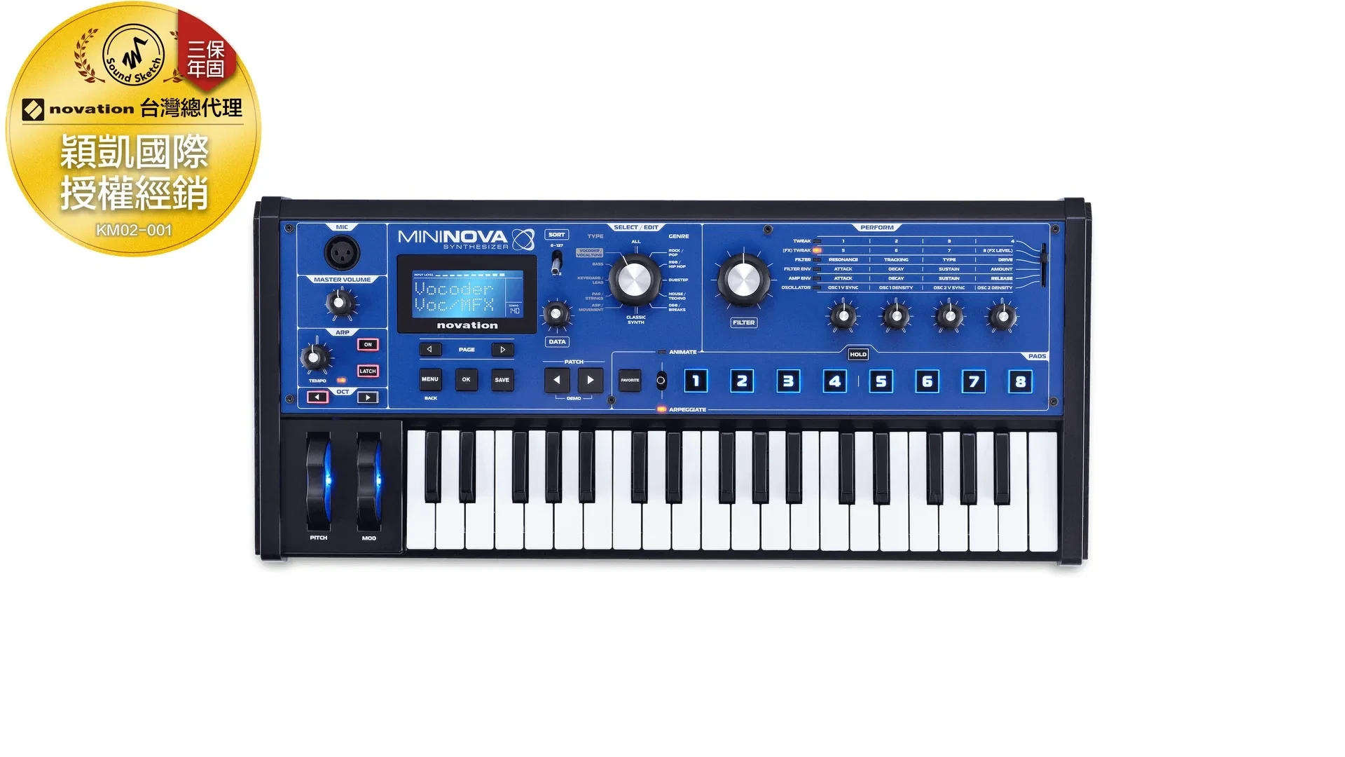 MiniNova 採用 Novation 最出名的 Nova 系列合成器引擎。可以製作編輯複雜的音色。最大發聲數可達 18 個。外加效果器變化。