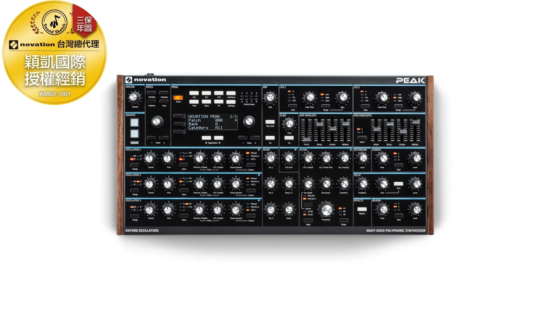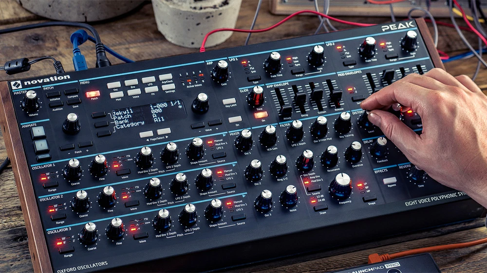 Peak 聽起來溫暖而豐富,帶有骯髒、刺耳的過載,是一台八複音合成器,每個聲部帶有三個 New Oxford 振盪器。 合成器的每個聲音都有一個諧振多模模擬濾波器,模擬信號鏈中有三個失真點。