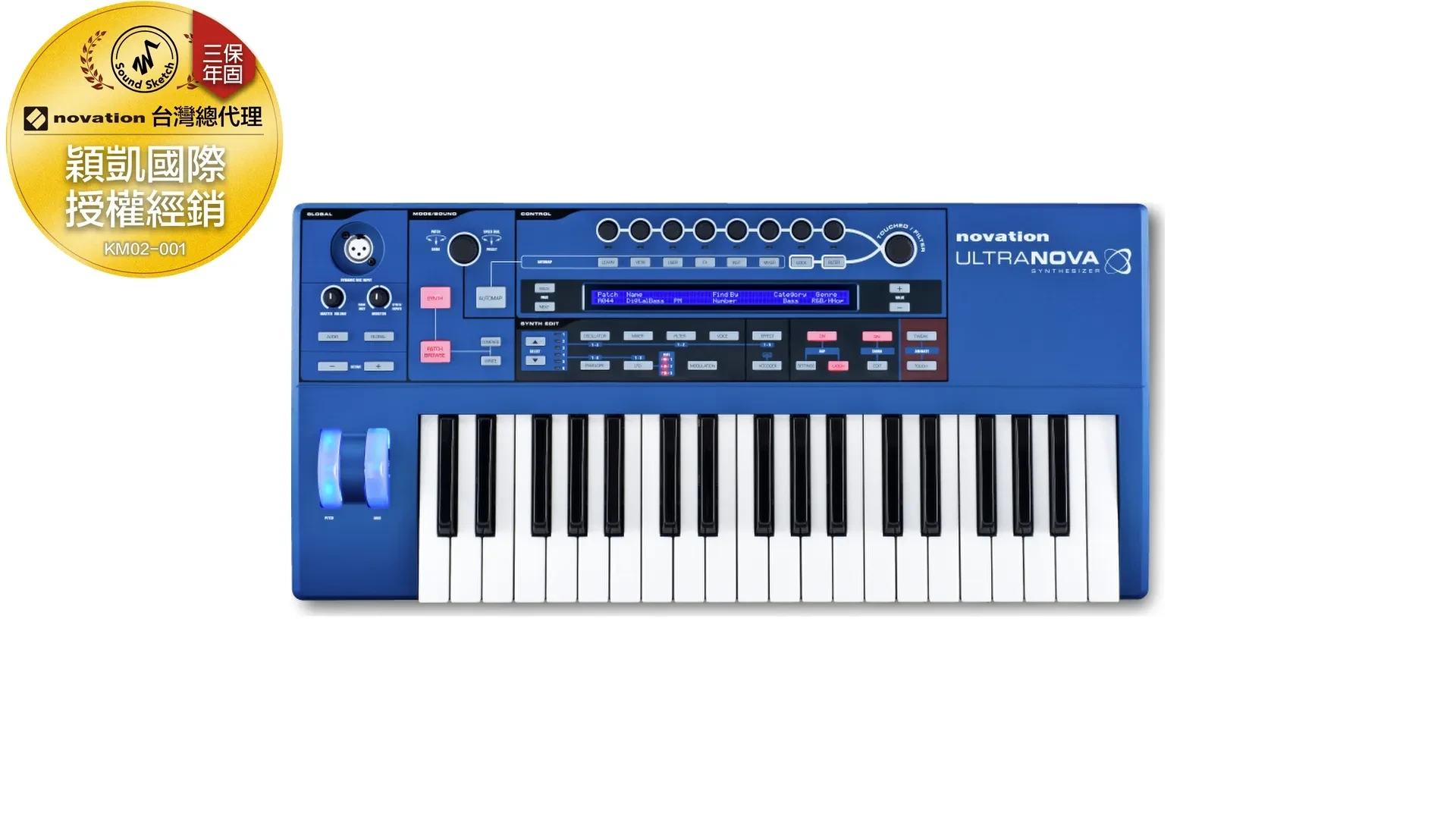 UltraNova是Nova系列最新的產品,更多新的特色,並且有平易近人的價格。UltraNova配備300種內建音色,你可以依類型(貝斯,主奏,打擊板等)或音樂曲風(hip hop,rock, house)來選擇,表演者或樂手馬上就能開始。如果你需要快速找到適合hip-hop音樂的貝斯音色,在type中選擇bass,在category裡選擇hip-hop,就可以找到了。如果你想要調整,你可以透過8個編碼器來改變聲音的特性,用較大的編碼器可以得到更多控制細節。