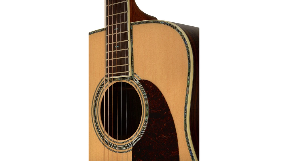 Sigma DR-42 木吉他是 Sigma Standard 系列中的頂級 6 弦龐克木吉他,採用堅固的西伯利亞云杉面板和印度紅木背板和側板,產生出出色的豐滿而明亮的音色。然而,DR-42 不僅聽起來很棒,它的外觀也很出眾,獨特的貝母嵌飾和琴身飾邊,金色的 Grover 開放齒輪機頭,玳瑁色的琴面護板和快速20個品格的印度紅木指板。