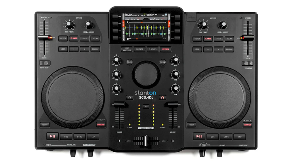 SCS 4DJ 可以使用基於 USB 的大容量存儲設備,包括閃存驅動器、硬盤驅動器、智能手機。支持的驅動器格式包括 FAT32、NTFS 和 HFS+(非日誌),而支持的音頻格式包括 WAV、MP3、AAC 和 FLAC。還有一個主機端口允許 SCS 4DJ 用作任何 MIDI 兼容軟件應用程序的 MIDI 控制器。四個 USB 端口之一甚至可用於連接標準 USB 鍵盤,以實現更快的搜索/瀏覽功能和其他基本控制。