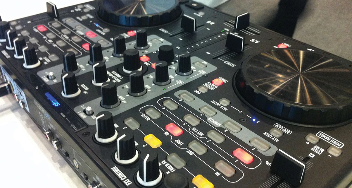 DJC.4 的設置再簡單不過了。插入隨附的 USB 數據線,啟動 Virtual DJ LE 即可。一對一映射是一種即插即用的解決方案,開箱即用,無需猜測。高分辨率的轉輪和音調推子即使是最精細的性能調整也能提供嚴格的控制,堅固的鋼製底盤、持久耐用的推子和底盤螺母式電位器經久耐用。由於所有按鈕和編碼器都包含移位功能,因此還可以輕鬆添加未來的功能。