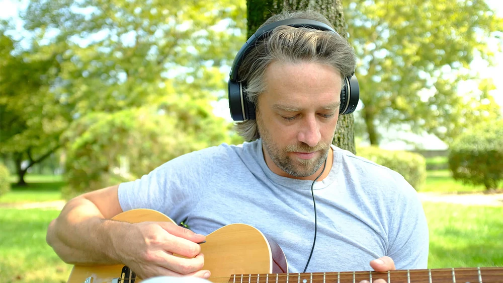 ■ 線纜也可以從右耳墊中拔出,方便彈奏吉他或貝斯吉他。
