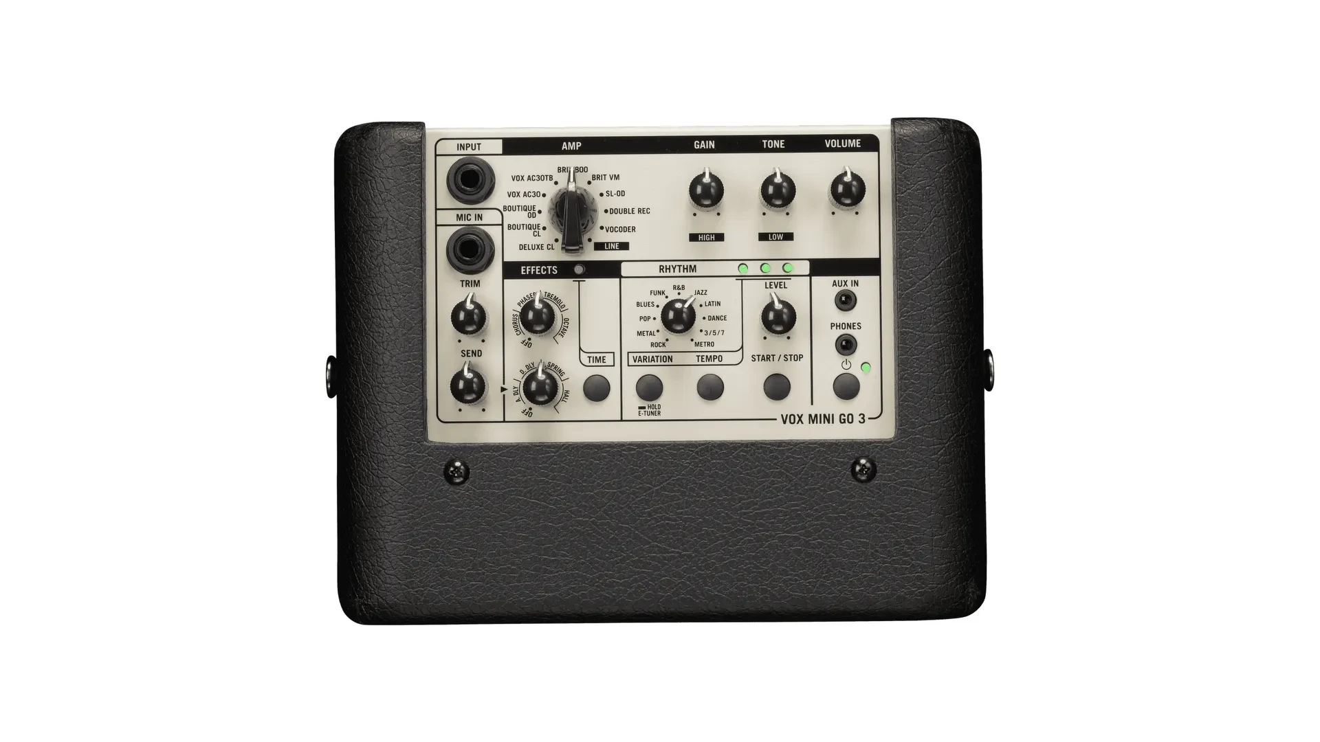 內建效果經過改進,提供更清晰的聲音和更廣泛的音色選擇。效果包括合唱、相位和八度等,並提供延遲/混響等八種效果類型。 Vox Mini Go 3是一款功能強大且便攜的擴音器,適用於各種音樂場合。